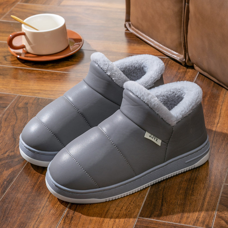 加厚底防滑防水h包跟冬季棉拖鞋pu皮面大尺码男女士家居室内家用