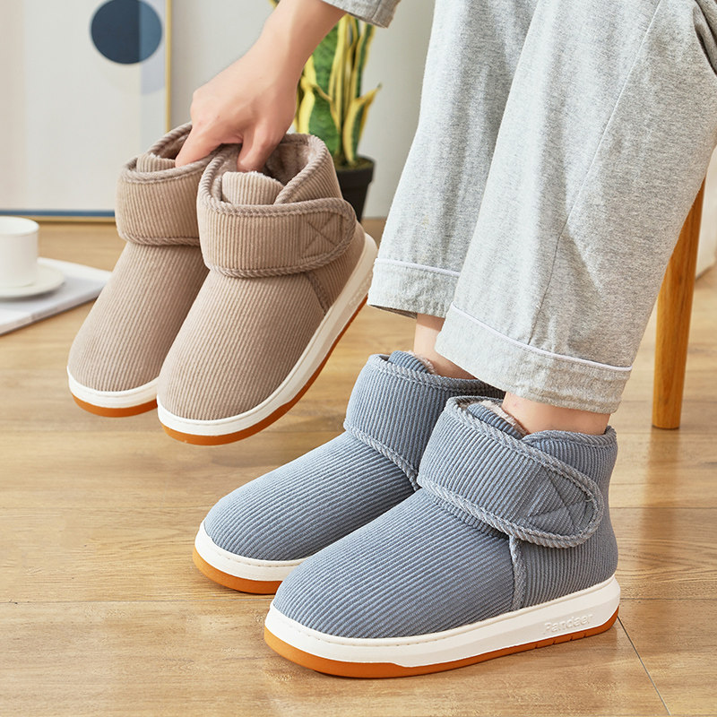 冬季男女情侣居家外穿防滑厚底高帮包跟棉拖鞋加绒加厚毛保暖棉鞋