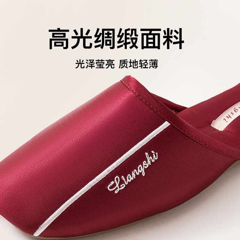 女室内家居拖鞋简约轻奢卧室情侣防滑静音包头更衣室地板绸缎棉拖