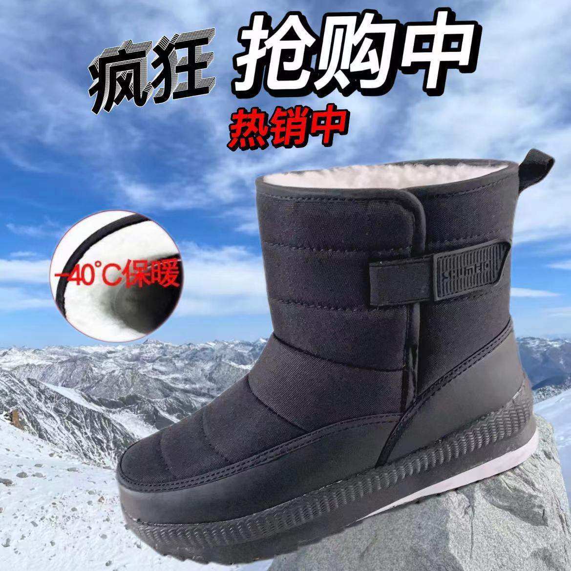 雪地靴男冬季新款零下加绒加厚抗寒保暖棉鞋户外厚底防滑面包棉靴