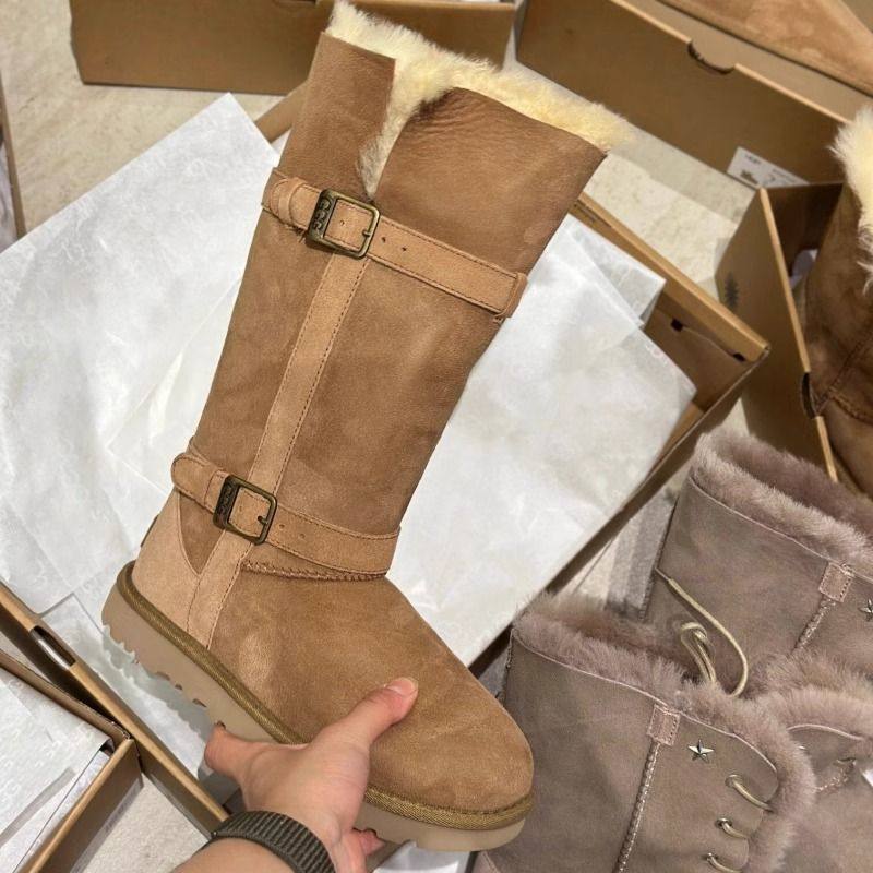 皮毛一体雪地靴女2025冬新款复古圆头平底加绒中筒雪地棉不过膝靴
