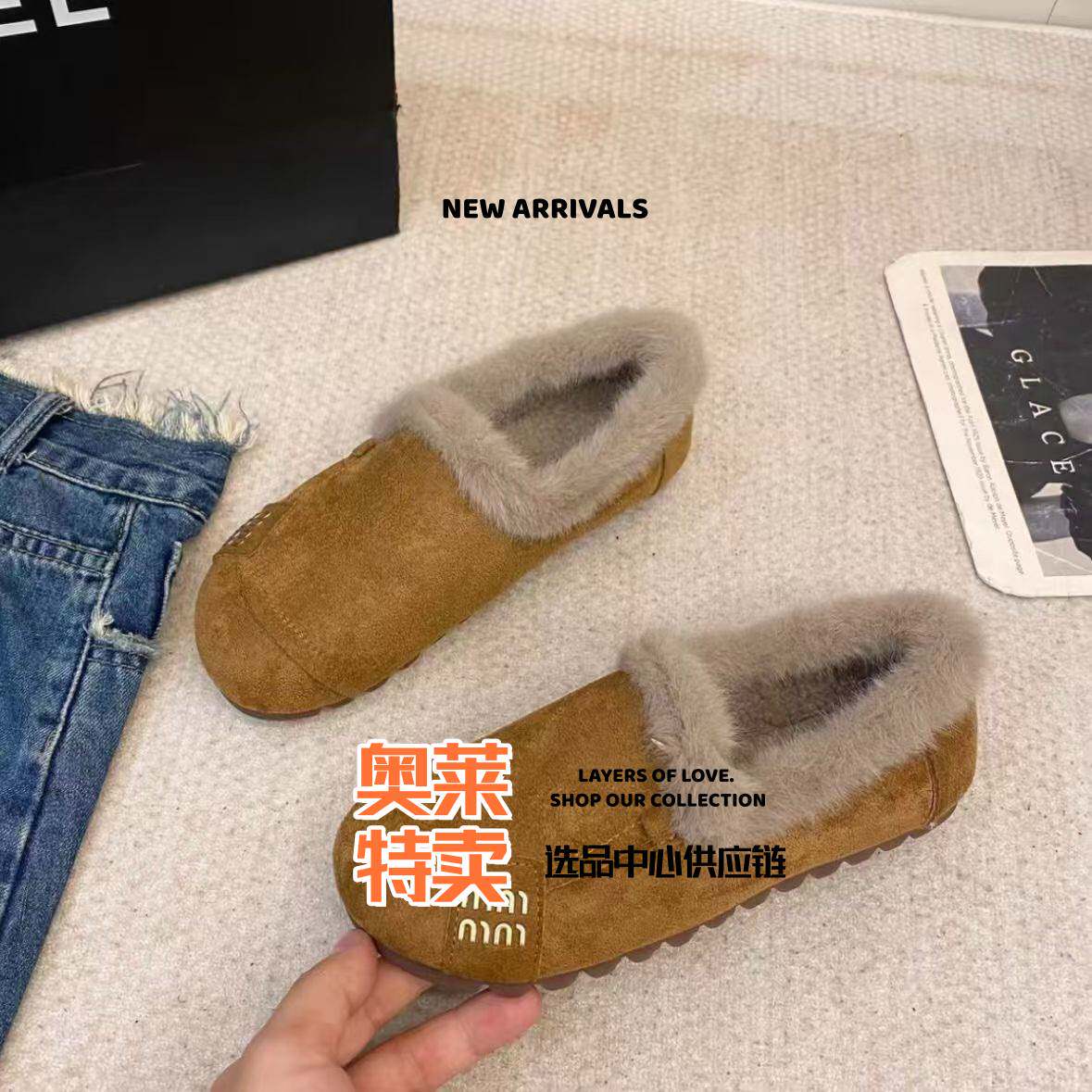 棉鞋女冬季加绒款乐福鞋踩屎感一脚蹬小码孕妇豆豆鞋