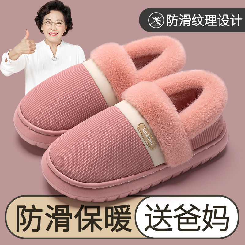 老人防滑棉拖鞋女士冬季外穿2024新款室内家居包跟保暖pu棉鞋男款