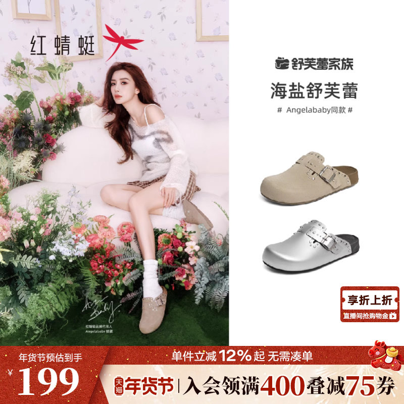 baby同款红蜻蜓海盐舒芙蕾勃肯鞋半拖一脚蹬女鞋外穿穆勒拖鞋子