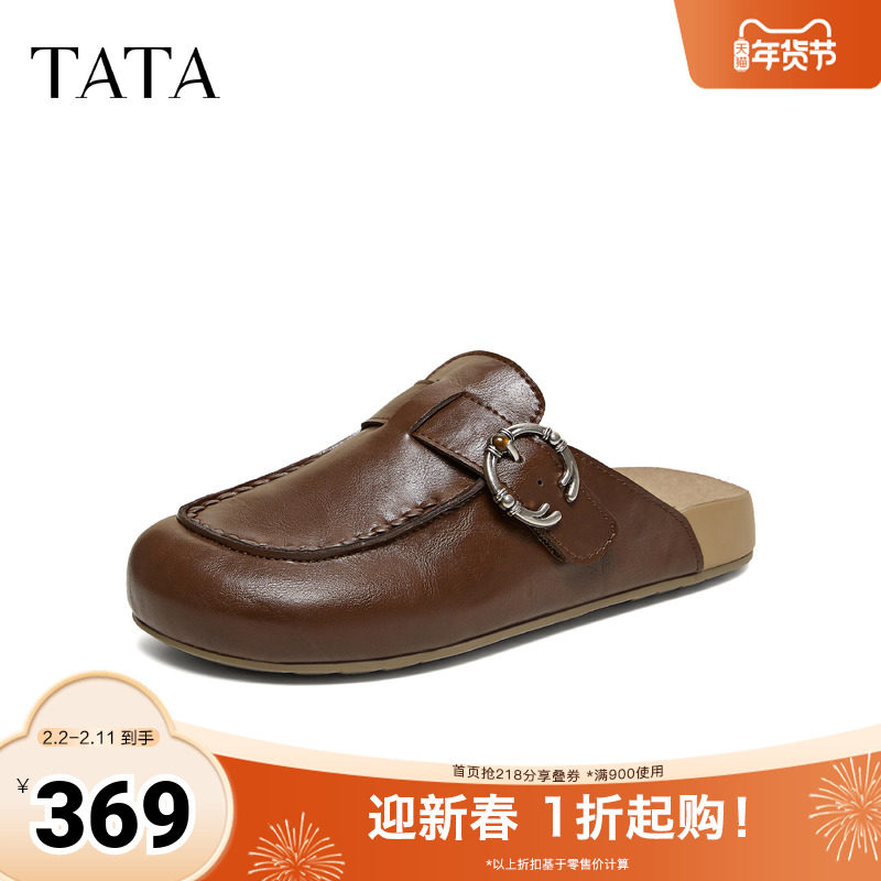 TATA他她复古包头拖鞋女鞋厚底休闲编织凉鞋2025秋季新款CXX01BH5