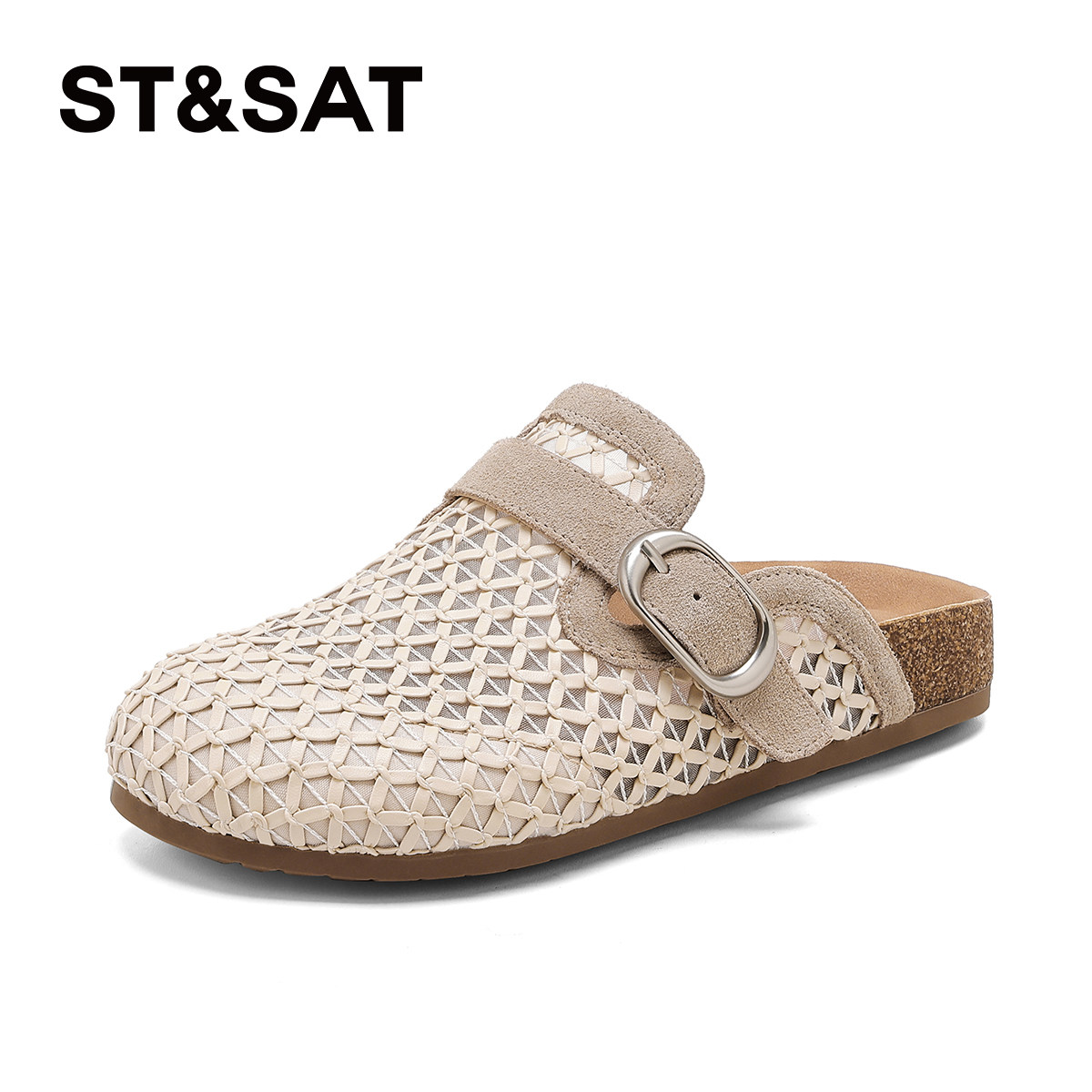 星期六编织勃肯鞋女2026新款包头半拖鞋时尚百搭懒人一脚蹬休闲鞋