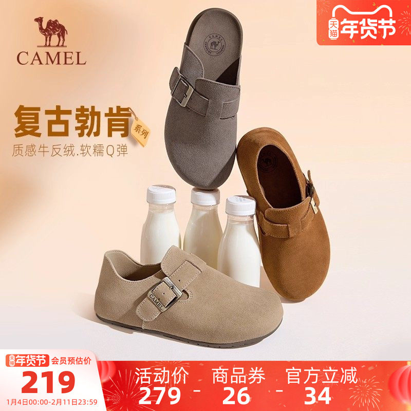骆驼女鞋2025秋季新款厚底勃肯鞋女复古一脚蹬懒人鞋包头半拖鞋女