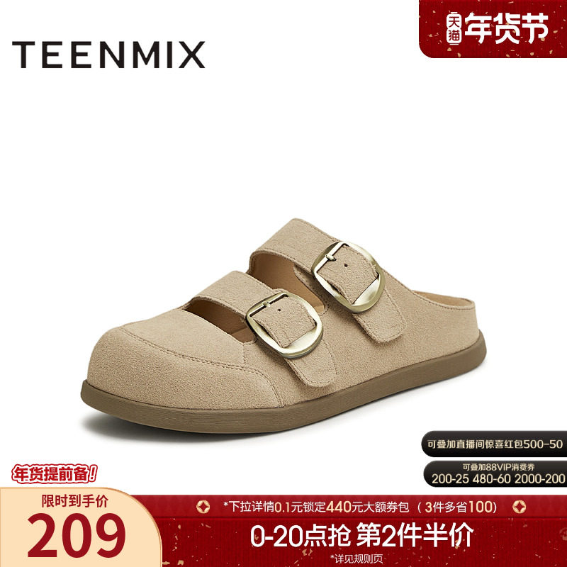 天美意复古厚底包头半拖鞋勃肯鞋女休闲凉拖鞋夏季新款KK030BH5