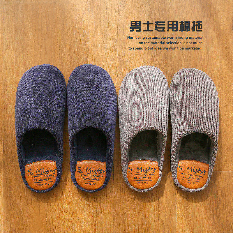 雪尼尔绒男拖鞋情侣冬季家居室内半包跟静音防滑保暖棉拖