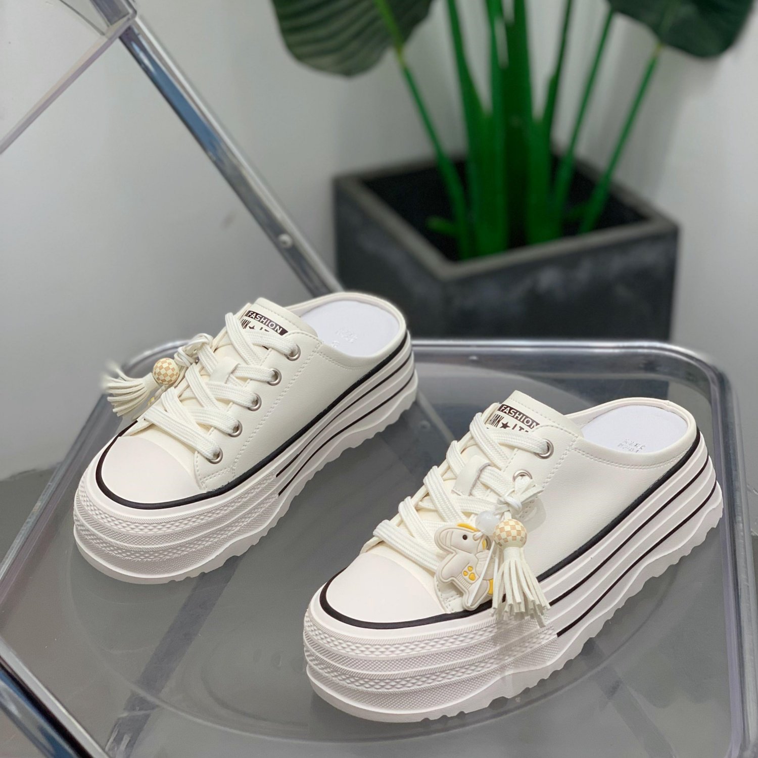 厚底流苏包头半拖鞋女2026年春季外穿增高板鞋百搭休闲懒人小白鞋