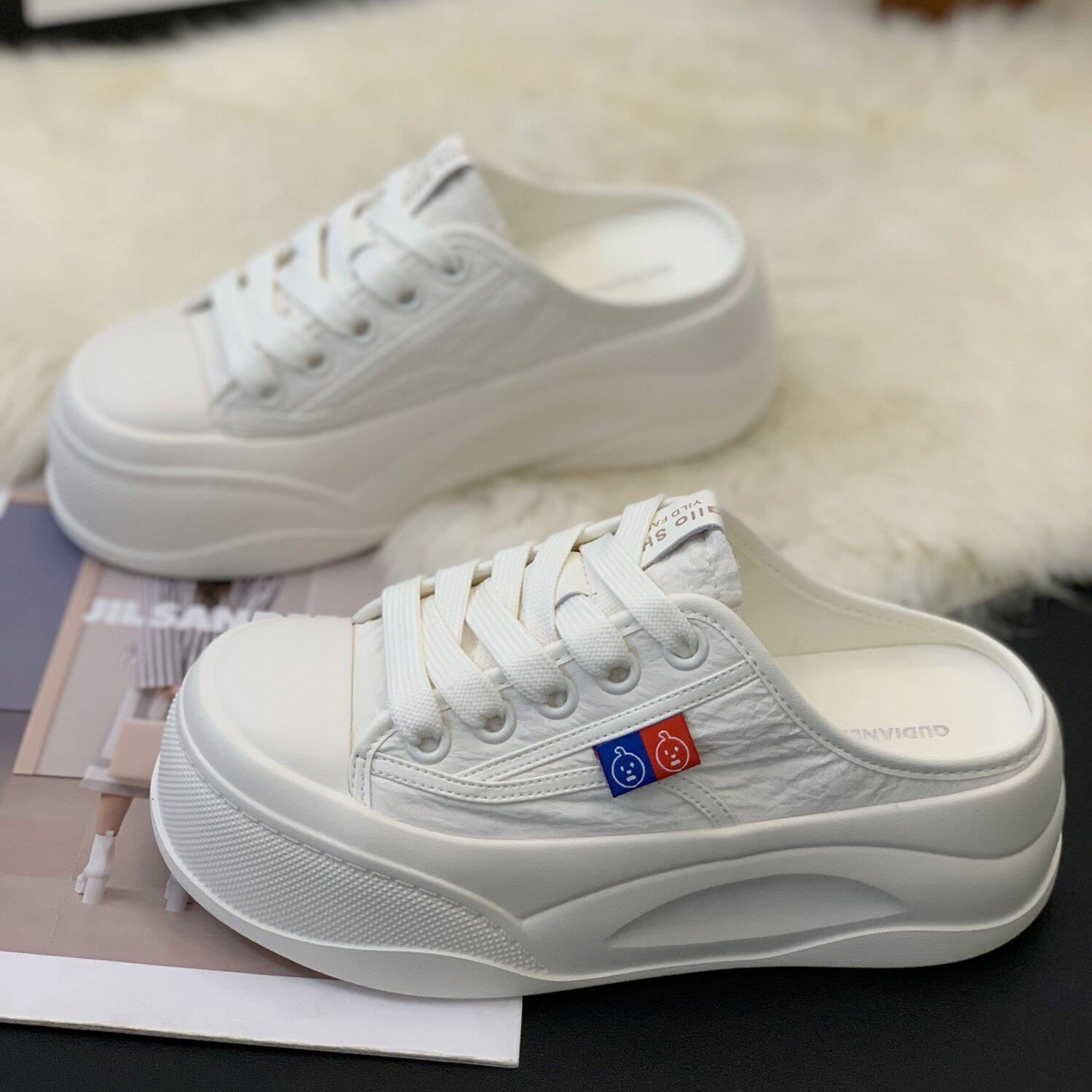 厚底包头半拖鞋女夏季外穿网纱透气无后跟小白鞋34码一脚蹬凉拖