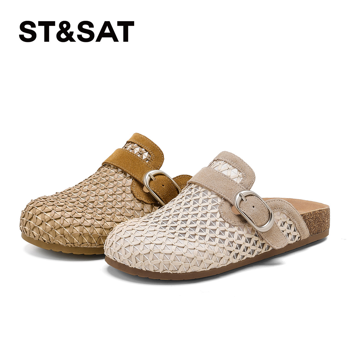星期六厚底勃肯鞋女款2026新款春季复古编织透气一脚蹬包头半拖鞋