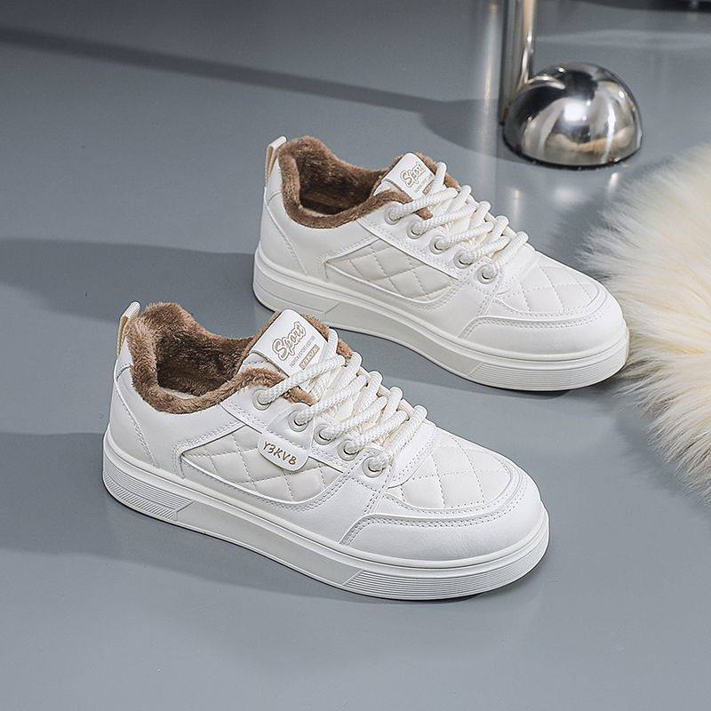 加绒小白鞋女2025新款冬季保暖棉鞋平底学生二棉轻便跑步休闲板鞋