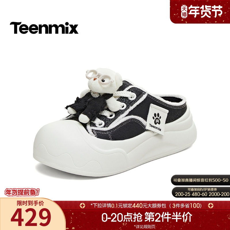 天美意厚底增高小白鞋包头半拖鞋女大头鞋板鞋凉拖鞋2026夏季新款