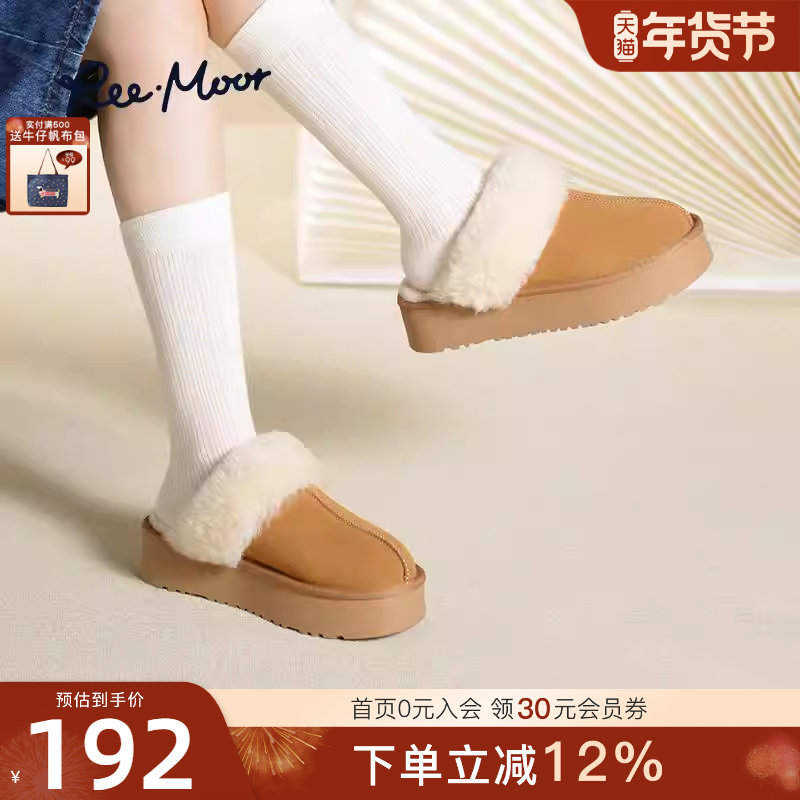 REEMOOR睿慕2025冬季新款包头半拖鞋懒人鞋外穿保暖厚底雪地靴女