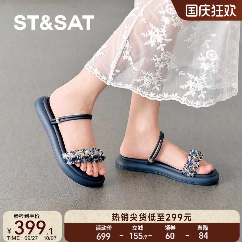 星期六时尚女凉拖鞋2025新款一字带配裙子海边沙滩凉鞋SSD2115332