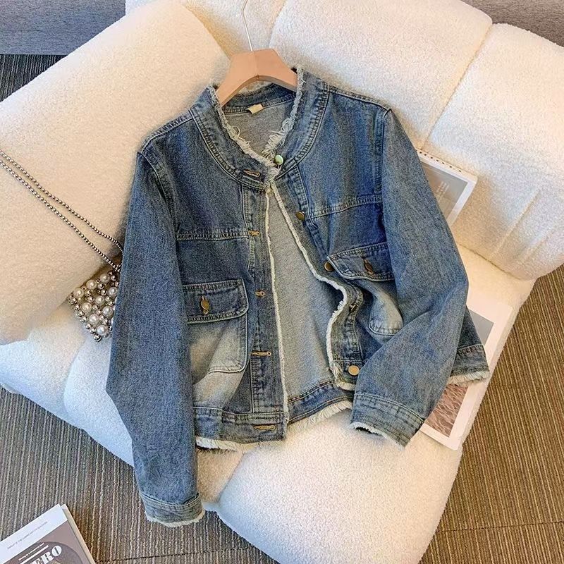 复古水洗牛仔短外套女春秋新款港味宽松百搭小众短款做旧长袖夹克