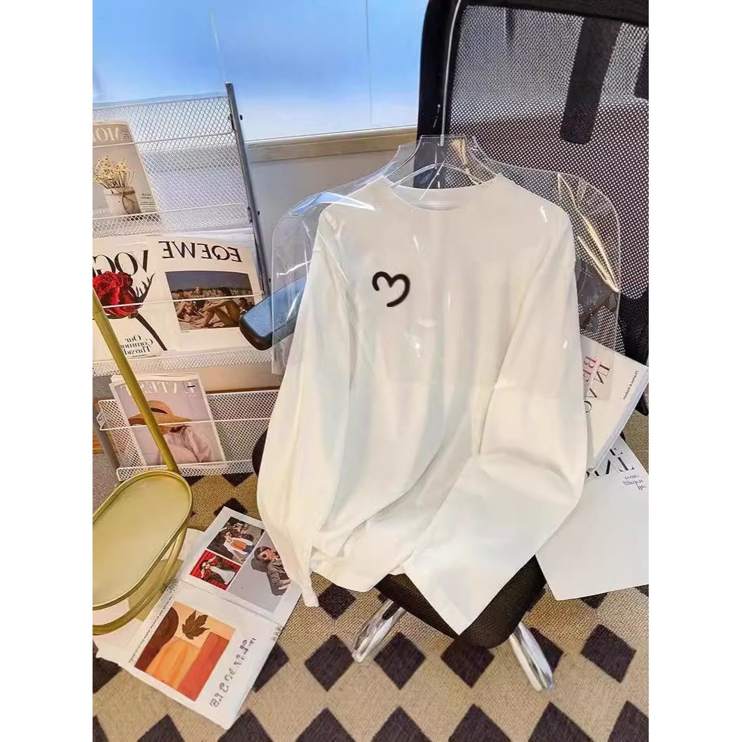 休闲爱心印花长袖t恤女韩版秋季新款白色简约宽松内搭打底衫