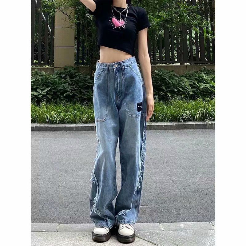 直筒阔腿牛仔裤女高腰设计感宽松显瘦显高垂感拖地裤子休闲ins潮