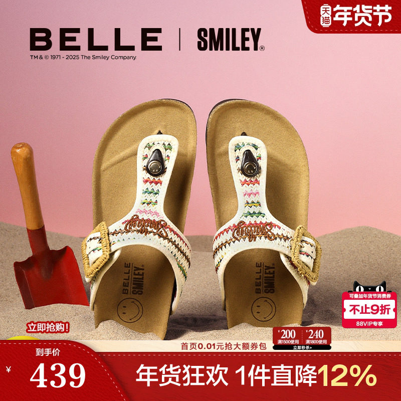 明星同款百丽SMILEY联名落日岛屿勃肯新款夹脚拖鞋BFAE6BT5