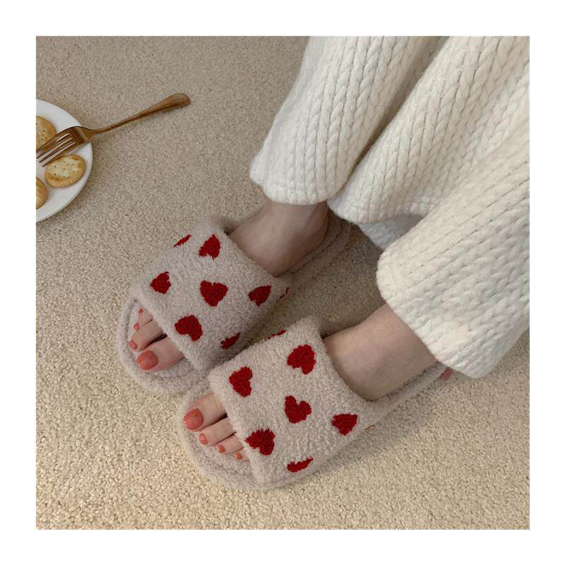 极速细细条 韩版可爱ins时尚少女心居家室内防滑一字毛绒棉拖鞋女