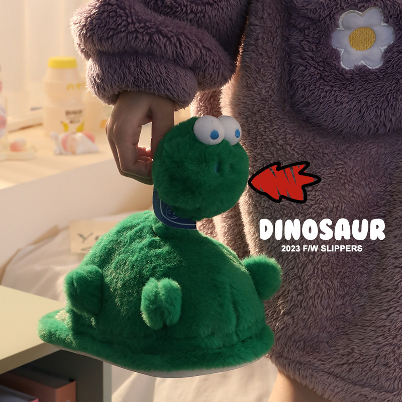 恐龙棉拖鞋女冬季居家室内可爱保暖毛F绒宿舍防滑厚底外穿棉拖ins