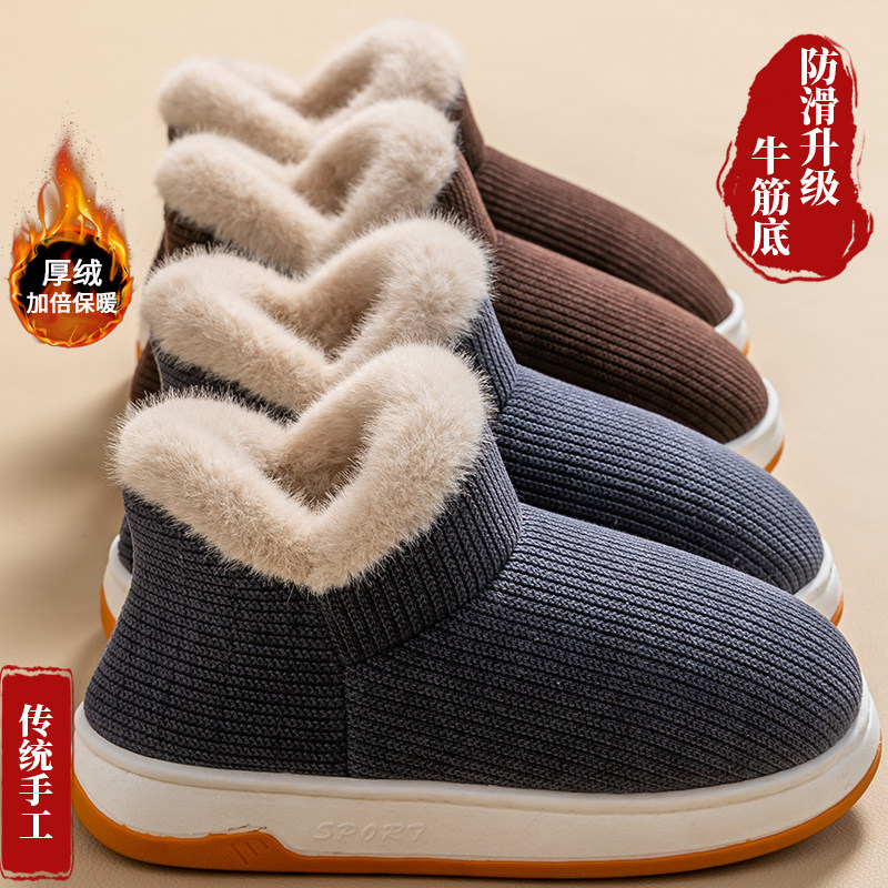 老人棉鞋女冬季防滑保暖加绒加厚室内居家居耐磨全包跟棉拖鞋男士