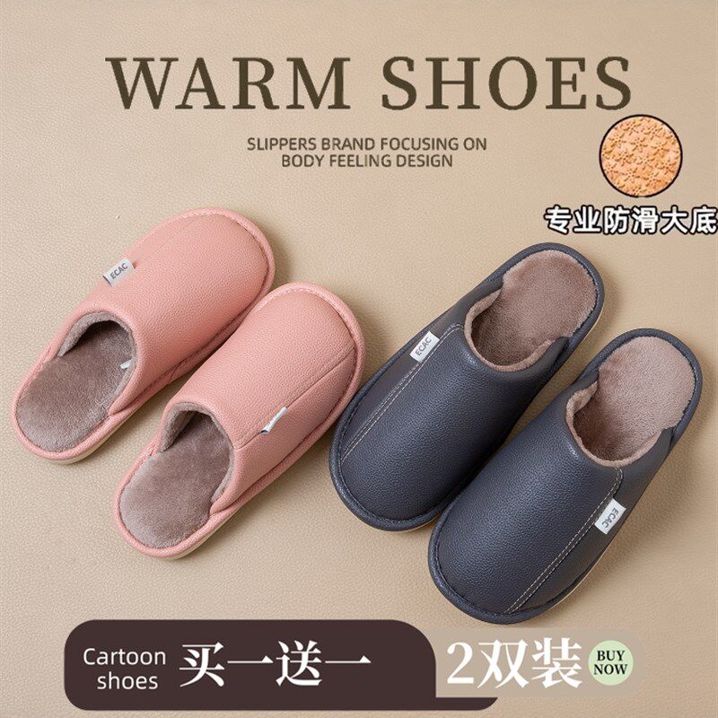 买一送一防水棉拖鞋女秋冬季v2025新款保暖防滑静音情侣地板棉拖
