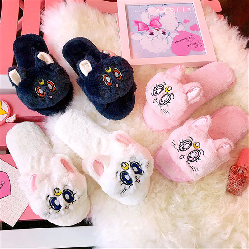 极速拉面丸子软h妹少女心日系家用拖鞋冬季毛毛卡通猫咪棉拖鞋可