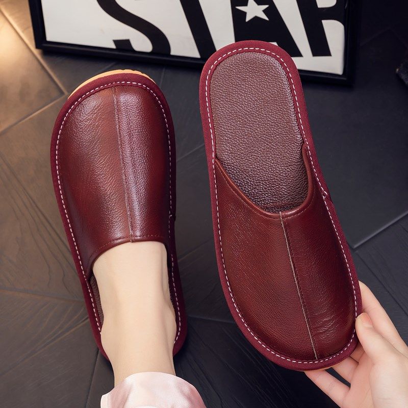 包头真皮拖鞋男居家室内家用软底防滑情侣家居牛皮面棉拖鞋春秋女