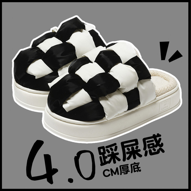 增高厚底棉拖鞋女冬季防水室内保暖加绒外穿inPs潮棋盘格防滑棉鞋