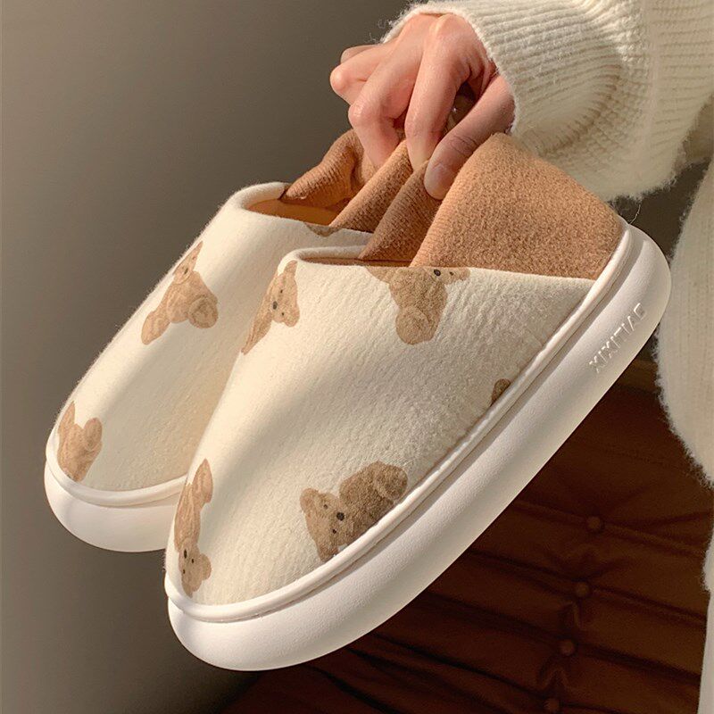 棉拖鞋女秋冬季可爱小熊外穿厚底居家防滑包跟加绒保暖月子鞋假日