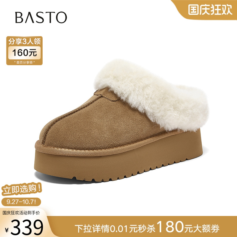百思图2025冬季新款真皮厚底毛毛鞋加绒保暖女勃肯拖鞋N8138DH5