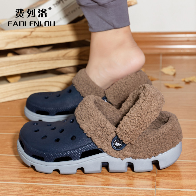 包头棉拖鞋男秋冬季包跟家居保暖防滑厚底内胆女可拆卸加绒洞洞鞋