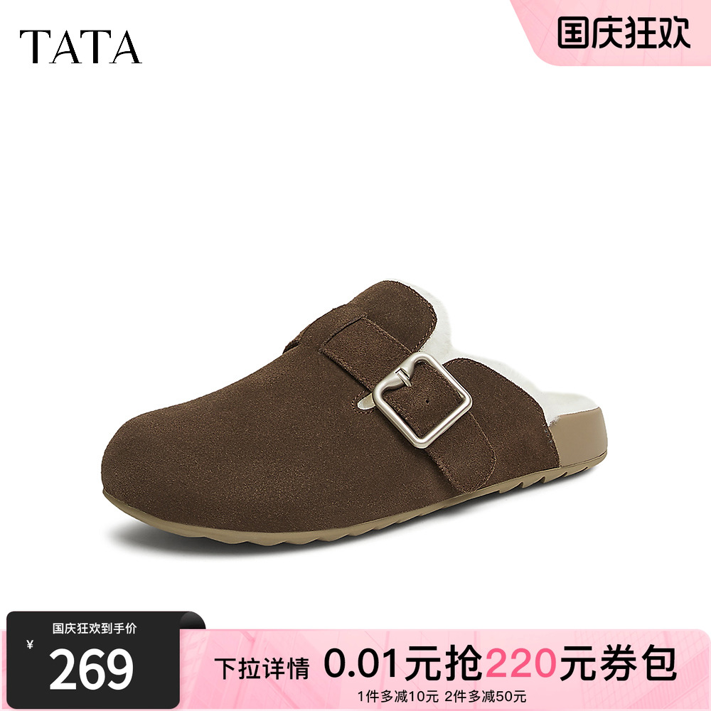 TATA他她女鞋冬新款加绒勃肯鞋全包厚底一脚蹬外穿拖鞋CGW06AH5