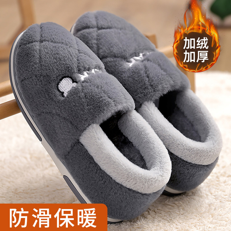 买1送1高级感棉拖鞋女士冬季2025新款家居情侣一对保暖毛绒拖鞋男