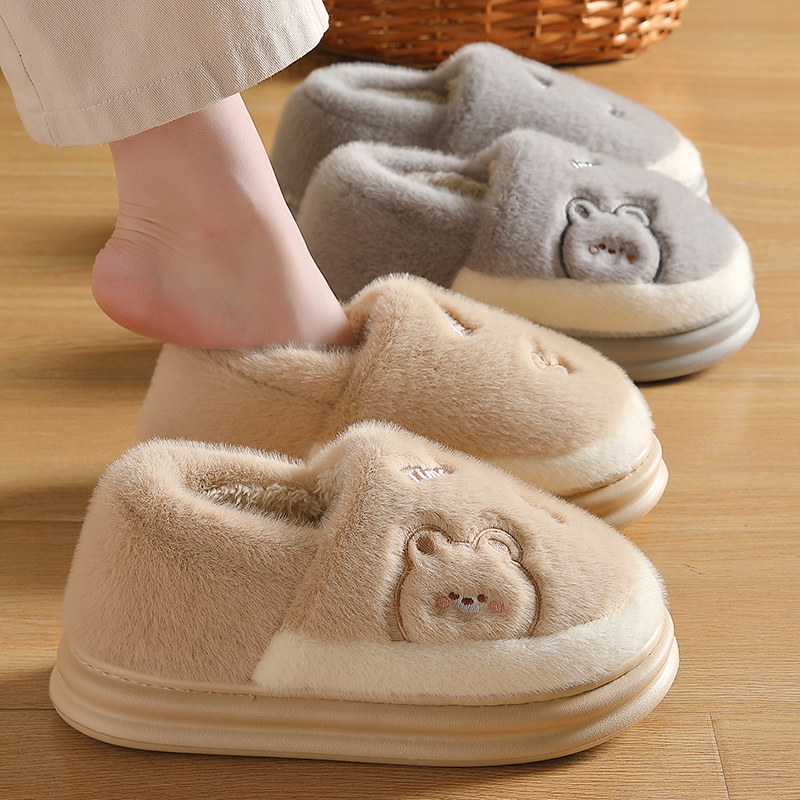卡通棉拖鞋女冬季室内包跟可爱月子鞋F厚底防滑大码居家用毛绒拖
