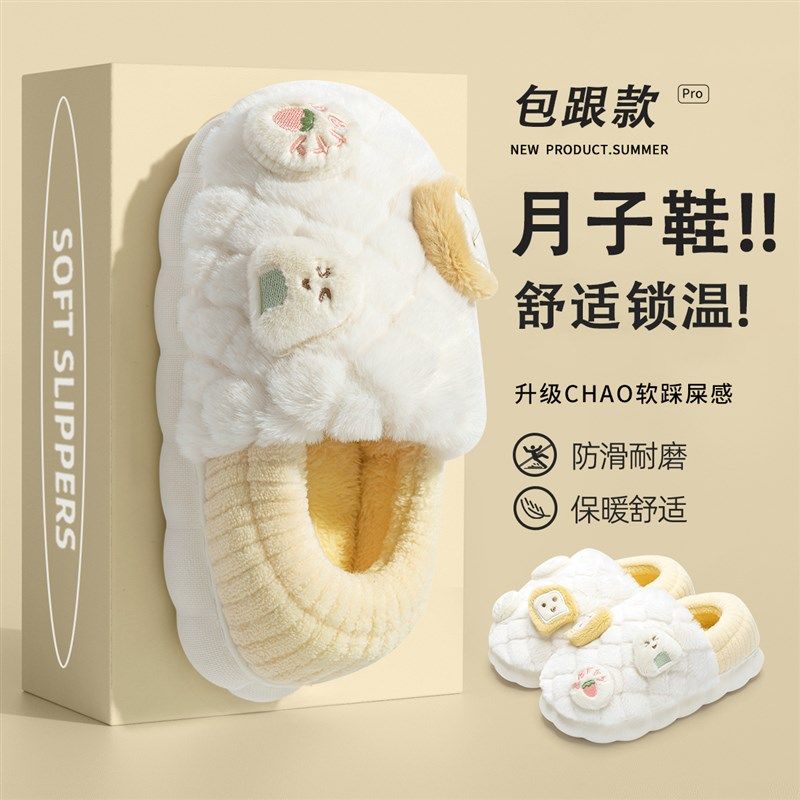 棉拖鞋女冬2024新款室内家居10月孕妇加绒保暖防滑月子Z鞋秋冬包