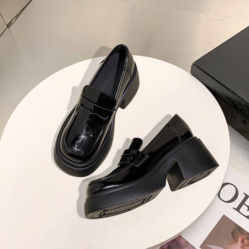 小皮鞋女春季英伦风厚底乐福鞋黑色松糕粗跟百搭真皮鞋子时尚