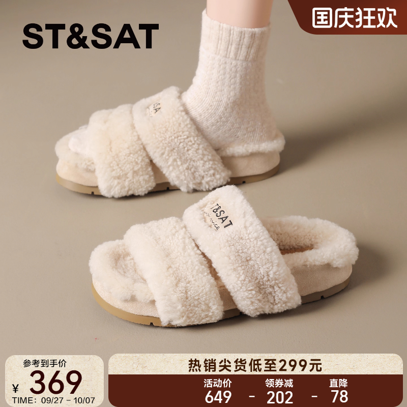 星期六羊毛厚底毛毛拖鞋女外穿2025新款秋季增高女鞋一脚蹬懒人鞋
