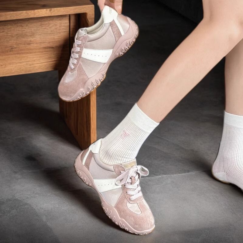 红色复古厚底德训鞋女鞋内增高春夏季软底芭蕾真皮女士休闲运动鞋
