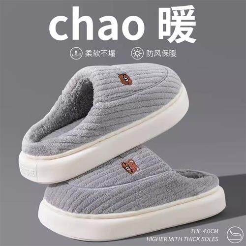 女冬季保暖泰迪绒室内家居软底家居拖鞋防水防滑静音简约厚底不臭