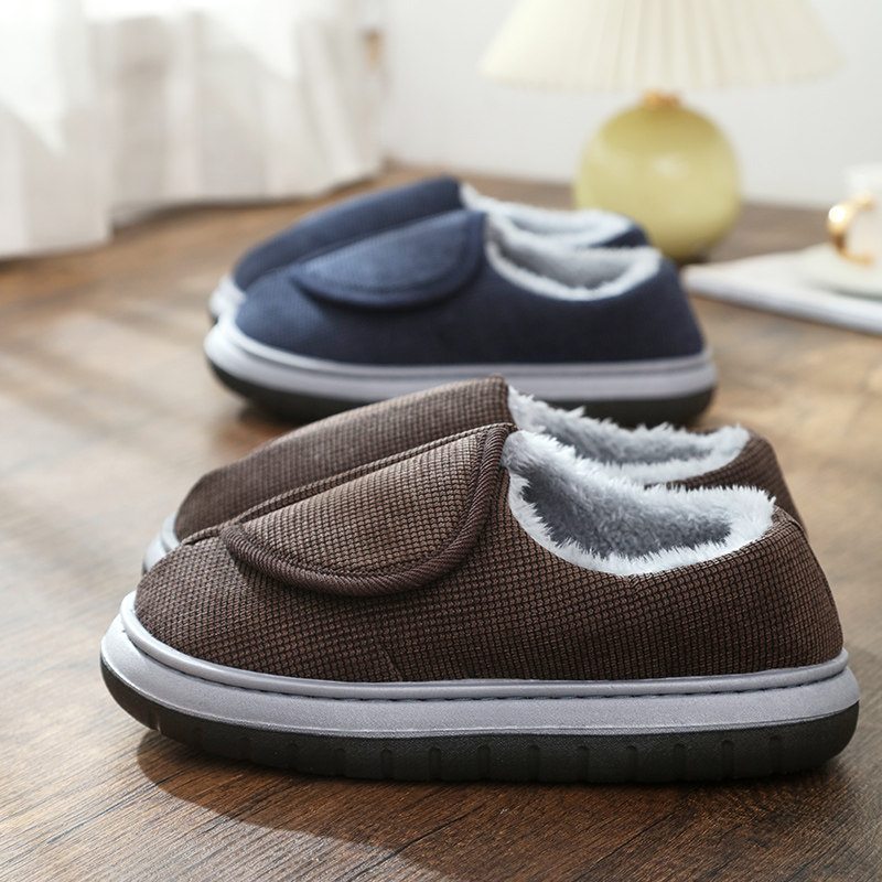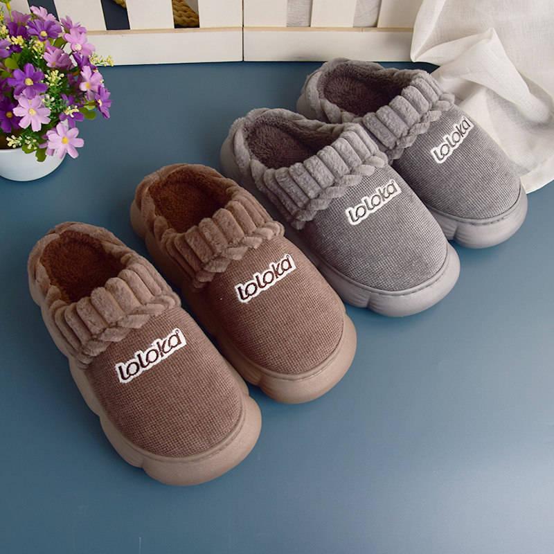 冬季加绒加厚男女家居保暖棉鞋居家外穿防滑厚底中老年包跟棉拖鞋