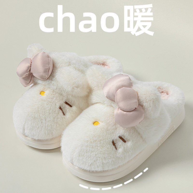 猫猫棉拖鞋女士秋冬季2024新款外穿室内居家毛毛绒保暖加绒拖鞋男