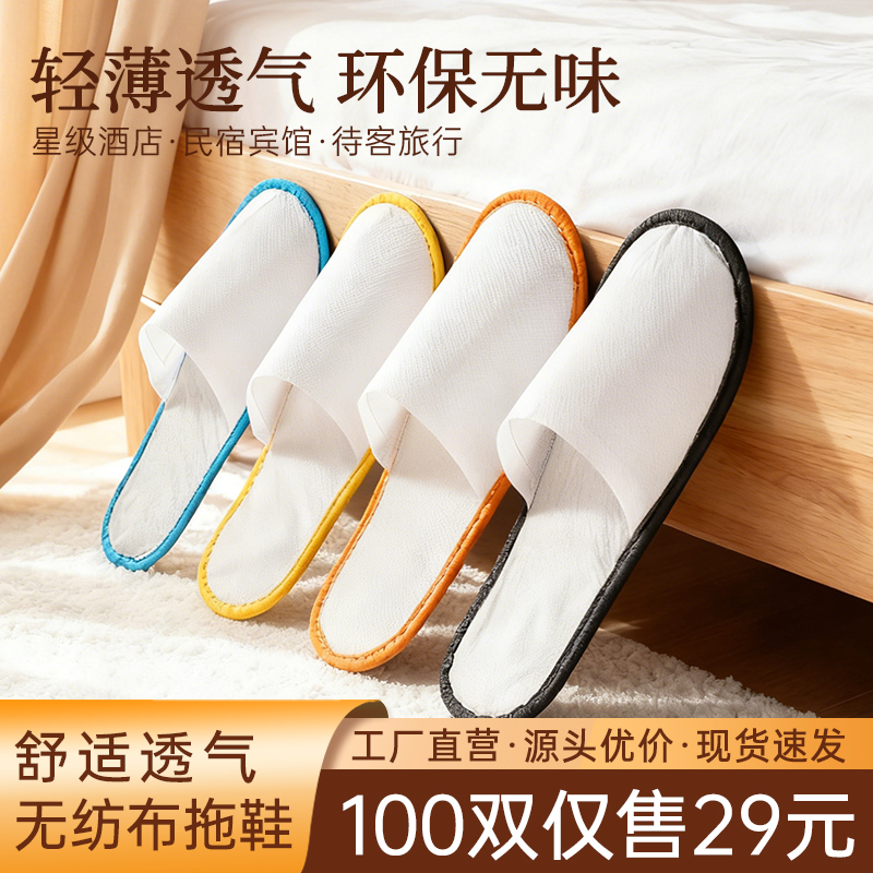 100双装酒店一次性拖鞋 宾馆用品加厚防滑客房用待客拖鞋定制专用