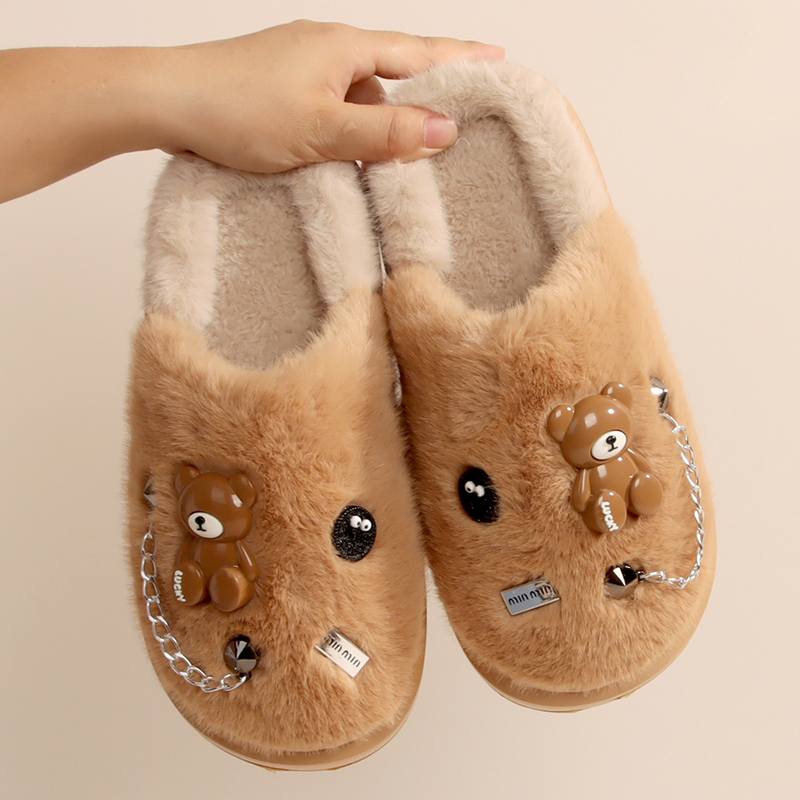 舒可2024新款可爱熊女士棉拖鞋秋冬季厚底防滑绒面保暖家居毛拖鞋