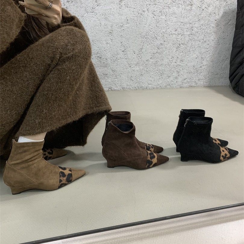 2025秋冬新款韩版方头内增高侧拉链马丁靴短靴绒面低筒切尔西靴女