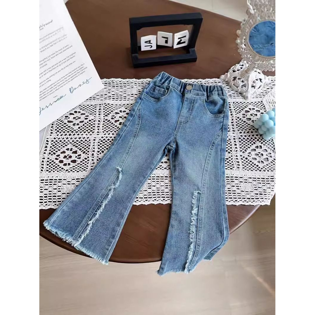 女童2025休闲裤子春秋季新款儿童女孩洋气时髦毛边牛仔裤喇叭裤潮