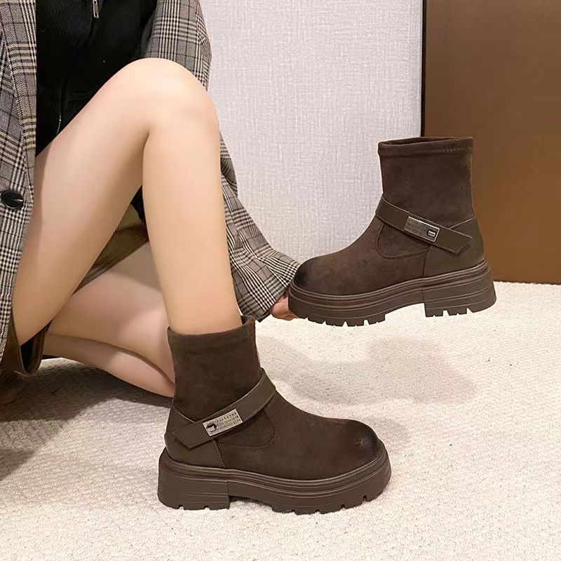 2025新款时尚百搭厚底增高高筒靴女英伦风复古短靴显瘦切尔西靴
