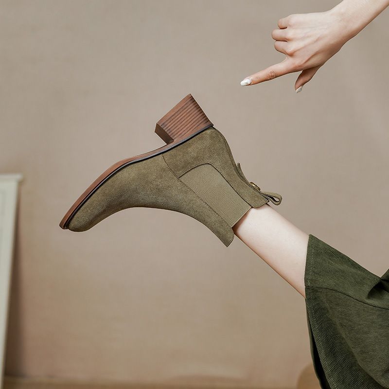 软皮大头短靴女厚底单靴2025秋季新款磨砂皮复古女靴后拉链马丁靴
